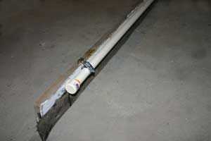 Foto 4-taladrar orificios de 1/8" cada 2" en la parte inferior y adjunta una tabla con un ceñir de amplia goma de 2 1/2" para actuar como un rodillo de goma para suavizar el agua.