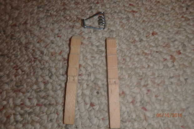 Tomar una de las pinzas para la ropa apartes. Mantenga el resorte y un lado y desechar el resto.