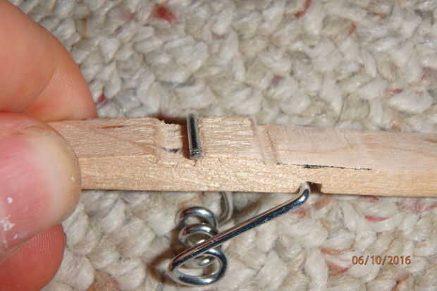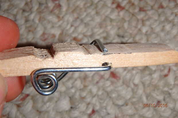 Ahora introducir el muelle detrás a la mitad de la pinza para la ropa al revés. Un lado debe encajar perfectamente en la ranura perforados de la tienda, mientras que el otro se basa libremente en la parte aplanada. A continuación, utilice la uña para sacar el resorte detrás y encima del borde que se corta solo. Se debe sostener firmemente, pero todavía mantienen su tensión. Si se desliza hacia atrás, corta la cerradura más.