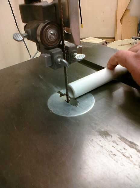 Use una sierra de cinta vertical para cortar el tubo a la longitud adecuada.  He encontrado 17,5" suficiente.