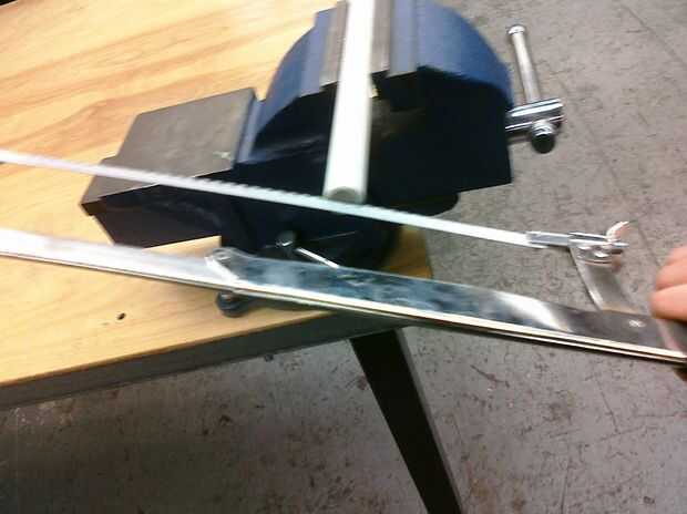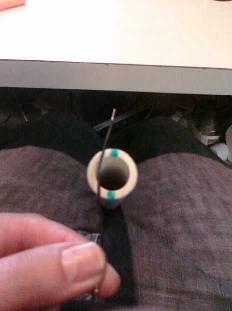 Poner dos pequeñas muescas en el tubo (uno por cada marca verde) para que un trozo de cuerda encajará perfectamente en el diámetro de la tubería.  Puede utilizar una sierra para metales para crear la ranura.