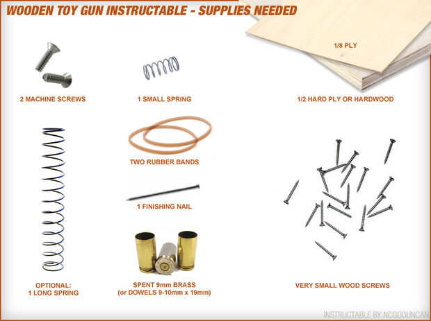 2) 1/8" madera stock: prefiero la madera contrachapada de abedul Báltico agradable que venden en las tiendas de hobby. Plexiglás, Masonite o cualquier otro material capaz de cortar, taladro capaz también funcionaría.