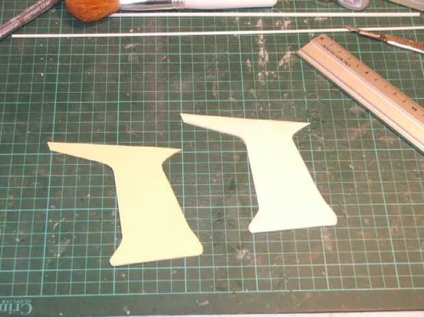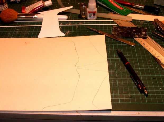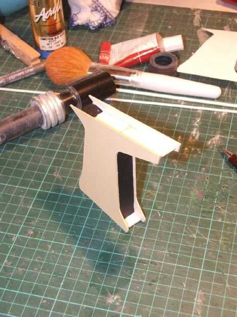 A continuación corté unas tiras de tarjeta de 3/4" o 15mm de ancho. Éstos fueron utilizados para construir un marco interno para la fuerza. Deliberadamente no aprovecho el marco hasta los bordes de la empuñadura porque necesitaba espacio para pegamento caliente del derretimiento en el llenador del cuerpo superior y el coche alrededor de los bordes para darles forma después.