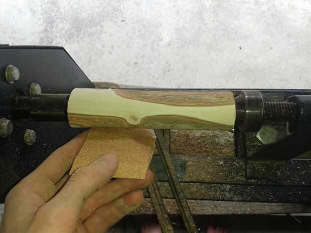 El torno dejó la madera un poco áspera después de compensación, así que me fui sobre él otra vez con un papel de lija.