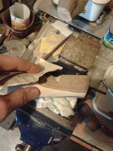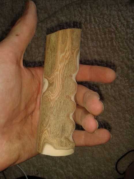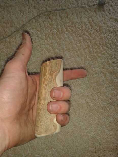 Después de todo, me di cuenta de la cuarta ranura no era realmente necesaria porque el dedo índice debe estar descansando al lado del gatillo, en lugar de presa alrededor de la manija. Así que con cortar un poco más y un poco de lijado más tomó el extremo y había arreglado todo.