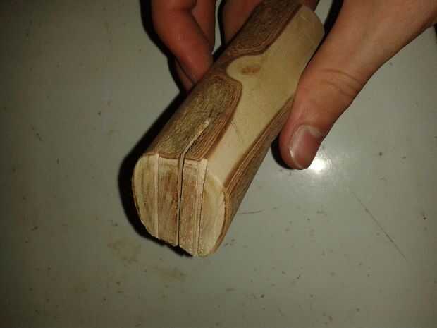 Yo utiliza la sierra para cortar una línea manera de la parte por la mitad del mango, para guiar el lijado un poco. También, como estoy seguro que la mayoría de ustedes conocen o por lo menos se puede adivinar, la madera se calienta con un poco cuando arena un lugar en particular, que puede llevar a quemar y el agrietamiento de la madera debido a que se seca. Generalmente tengo que esperar un tiempo para dejar que se enfríe entre lijado, pero esta vez solo pensé por qué no chuck en el congelador un rato para refrescarse abajo más rápidamente, por lo que hice.