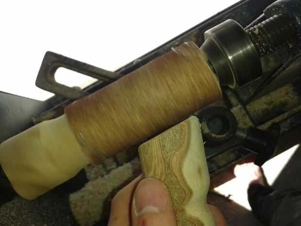 Para obtener el identificador para ajustarse bien al cuerpo, sabía que tenía que hacer algunos intensa-presentación/lijado a mano. Luego tuve un pensamiento, aunque, ¿qué pasa si os adjunto algún papel de lija en un pedazo de madera que ya había dado vuelta en el torno y utiliza a la ranura de la arena? Así es lo que hice y funcionó a la perfección! Sólo utilicé algunas grapas para los bordes y un poco de pegamento a virar por la mitad del papel de lija. Estoy seguro de que existe una real herramienta ahi que puede utilizar para obtener este tipo de curva y si lo tienen, entonces, pero para otras personas como yo que no tienen muchas herramientas especiales a su disposición, entonces se trata de una solución adecuada.