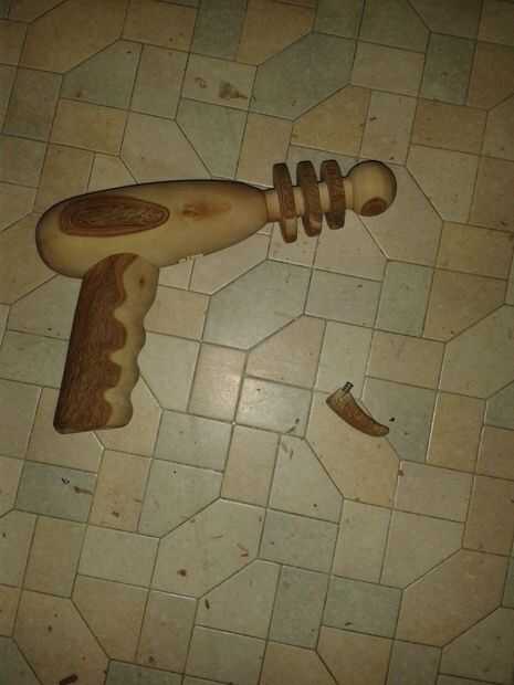 Había sacado el gatillo anterior, para evitar romper el gatillo mientras todavía trabajaba en el resto de la pistola de rayos, para después volver a instalarlo, todo el ray gun fue completa!