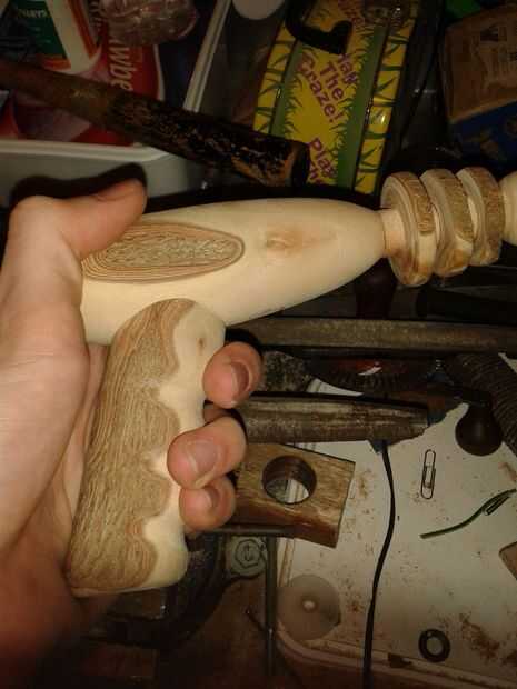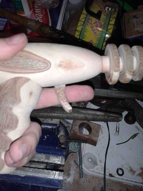 Después de eso, tenía la empuñadura y el gatillo en la posición correcta del cuerpo y dibujé las marcas donde deben estar.