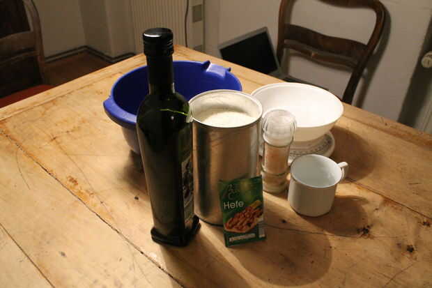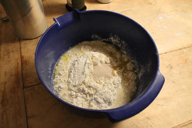 para los amantes de la pizza!Paso 1: Precalentar el horno a unos 450-500 gradosPaso 2: Se reúnen los ingredientes:1/4 cucharadita de sal-Gran recipiente-1 cucharadita de azúcar-1 set de levadura seca-1 taza de agua caliente-2 3/4 tazas de harina para