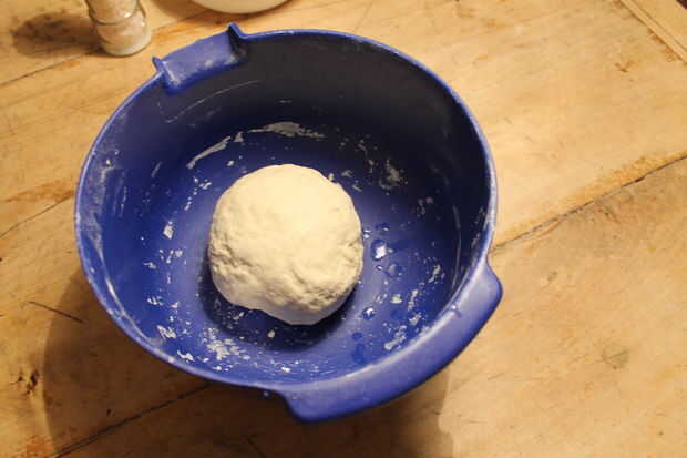 tomar aprox. 300g gluten libre de harina, pizca de polvo de hornear sal, pinch y algo de agua. mezcla añadiendo agua poco a poco. parada antes de que llegue gloopy.Yo estoy advirtiendo ahora, no use levadura ya sea seca o mojada, sabrá manky.Masa lib