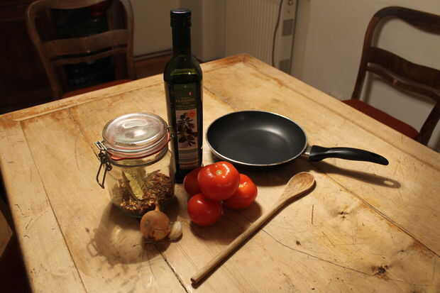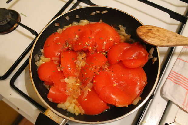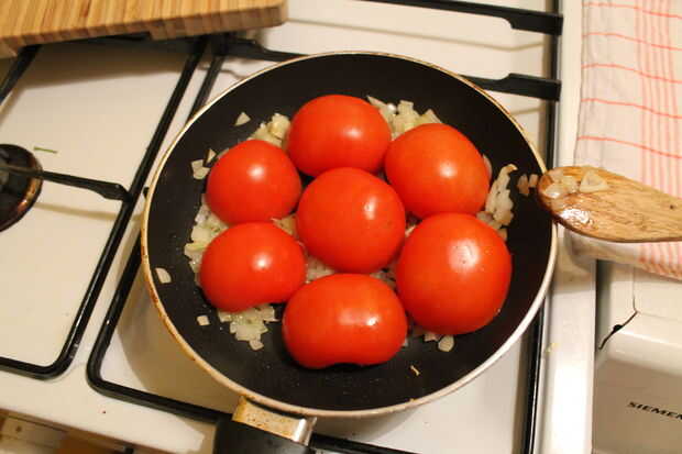 Para hacer la salsa necesita primero tomar las verduras. Pelar la piel de la cebolla y el ajo. Luego cortar en cubos. Ponerlos a un lado y tome los tomates. Si los tomates son suaves, sólo usted puede cortar en mitades. Si no, cortar en cubos, así. Poner aceite en una sartén y calentar para arriba. Una vez que el aceite esté caliente puede Agregar la cebolla y el ajo a él. cocer hasta que las cebollas estén vidriosas. Luego añadir los tomates. Después de un tiempo debe ser lo suficientemente mullidos para tomar la cuchara y sqish ellos. Esto le dará la salsa. Añadir el Chile a la salsa y dejar cocinar un rato. Opcionalmente puede Agregar pasta de tomate, pero no es necesario sobre todo.