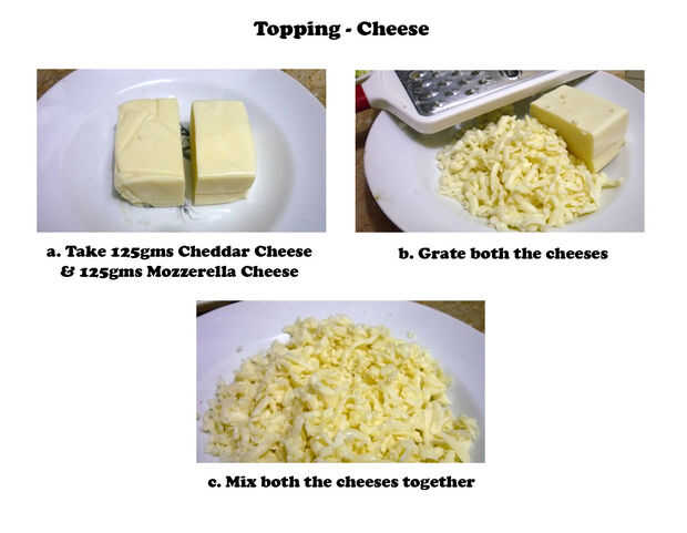 Rallar el queso cheddar y mozzarella y combinan entre sí.