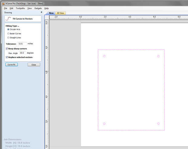 alrededor de esto importando tus vectores a VCarve Pro, utilice las curvas de ajuste