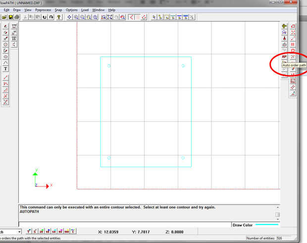 Ahora abra FlowPath e importar el archivo DXF. Ejecutar orden Auto ruta de acceso, seleccionar todo