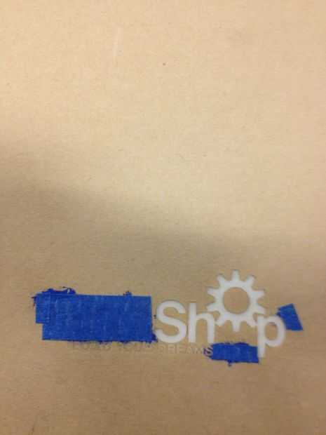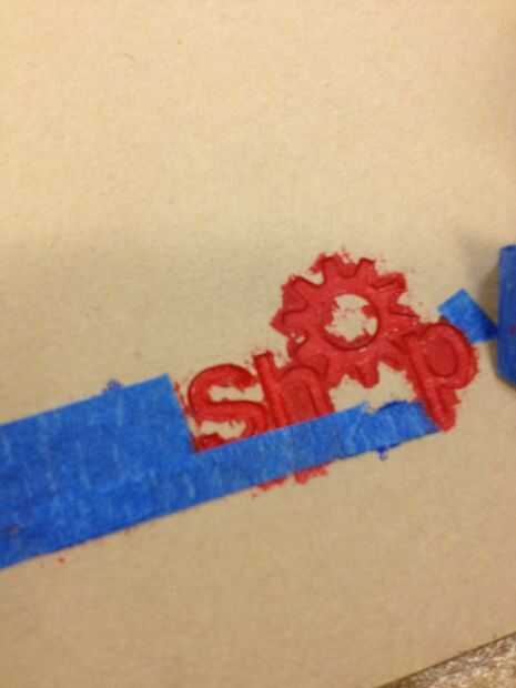 láser y grabar las partes rojas de la insignia de TechShop. Pintar otra vez y la máscara. Vez