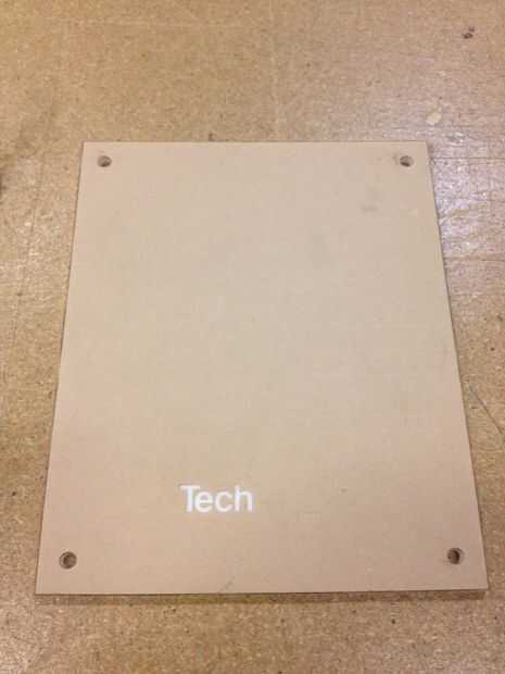 agujeros de montaje y grabar las partes azules de la insignia de TechShop. Cuando es