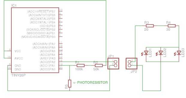 Usted no puede ver en el esquema, pero el + del adaptador va a Vcc y - a la tierra.