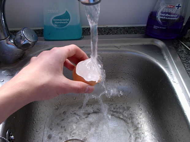 Bueno, después de que habían comido los huevos para el desayuno y las cáscaras de huevo restante, limpiar las conchas de huevo suavemente con agua. Luego dejar el aire de cáscaras de huevo seco, que si usted mano seque, puede romperlo...