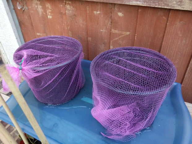 La red es extraordinariamente elástica, aquí está protegiendo algunas semillas de girasol en algunas ollas bastante grandes.