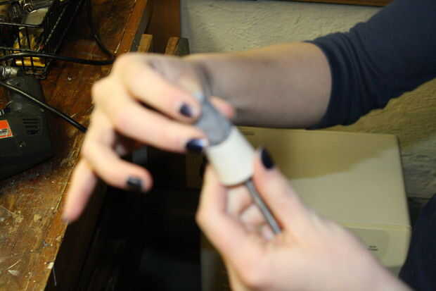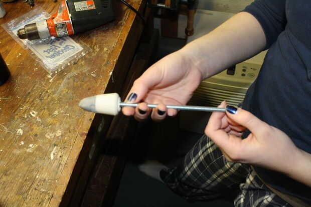 1) cortar un agujero en la parte inferior de la punta de goma. Desea el agujero sólo lo suficientemente grande para encajar el perno de 6".