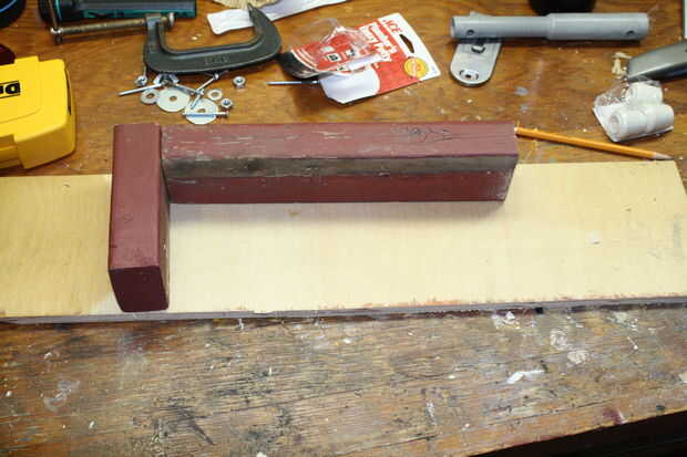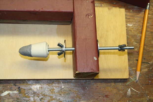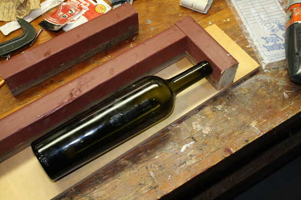 3) use su botella para obtener una idea aproximada de donde debe ir y marque en 2 x 4 más pequeño el agujero para el perno de 6".