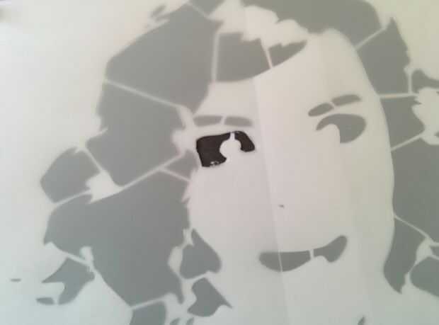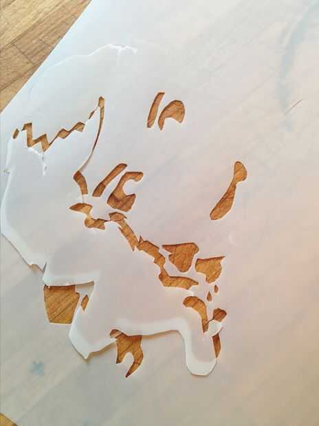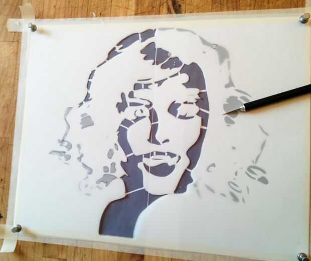 Mientras se trabaja a través de los cortes, comenzar con los detalles más importantes, central primero. Para esta plantilla de una cara, I empezar con los ojos y pasar más tiempo consiguiendo esas características importantes. Los detalles en el pelo son menos importantes, pero es aún mejor si todo se alinea. Como usted trabaja su manera hacia fuera, usted encontrará que hay algunos detalles y puentes que se pueden dejar hacia fuera. Más de una vez, he rociado prueba una corte incompleto de la plantilla y le gustaba bien sin agregar los detalles en los bordes. La línea más simple que se comunica la imagen es la mejor! Si te estás preguntando si un detalle es importante, puede mantener la imagen original cerca para que podáis comprobar contra la plantilla.