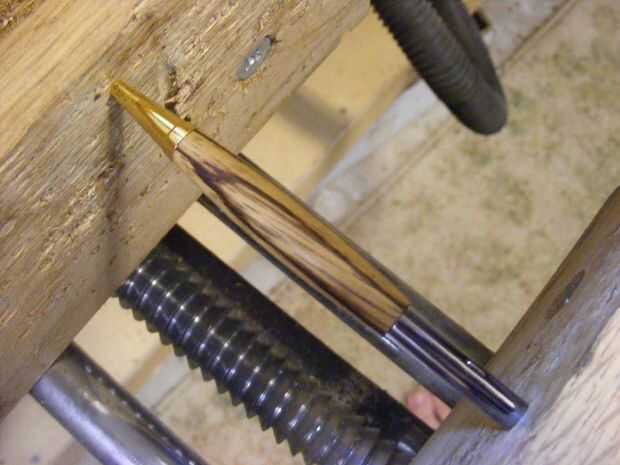 Por último, presione la tapa de la pluma y el clip en el cañón de pluma superior. Tenga en cuenta que la banda del centro irá entre los barriles de la pluma.