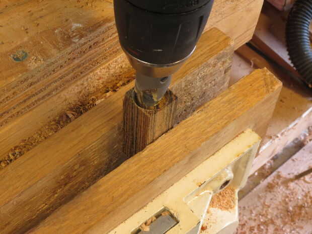 Hacer una cara de madera el camino fácil,Empecé a taladrar un agujero de 17mm a través de un bloque de la playa y una pisada en él con un grifo de acero,Comencé a golpear ligeramente en el taladro para asegurarse de que era todo a 90 gradosPaso 1: Go