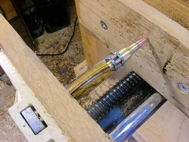 En la siguiente foto que estoy presionando la pluma por detrás el conjunto en el otro extremo de la barrica de madera de la pluma. Otra vez, ir lento y mantener todo alineado.