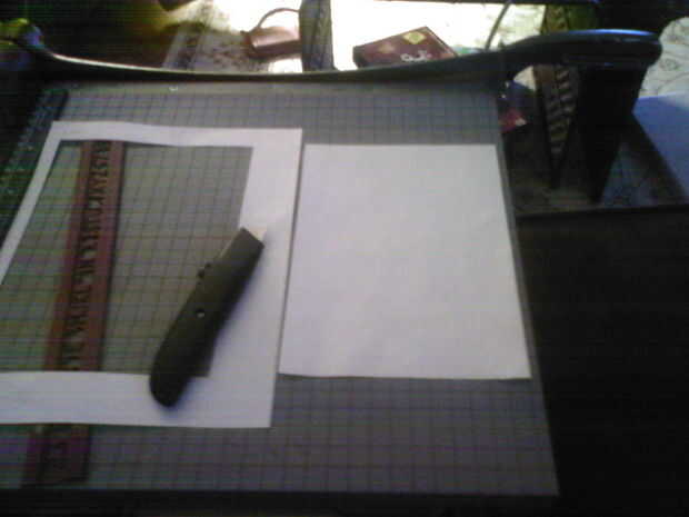 Como ya he dicho, es una buena idea utilizar cartulina aquí: es más grueso y más fuerte que el papel de la impresora regular y hará mucho más fácil cuando comience a doblar. Cogí una tarjeta de cumpleaños vieja tenía por ahí y utilizar esto para decidir sobre las dimensiones de mi postal. Era 16 cm X 22 cm, por lo que acabo de ir con ese tamaño. Con su cuchillo del Exacto, ajuste su cartulina a este tamaño (o cualquier otro que usted prefiere). No todo doble, como esto va a pasar en un paso posterior.