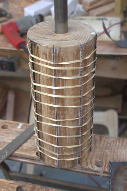 con resina sujetándolas con bandas de goma hasta que el epoxy curado.
