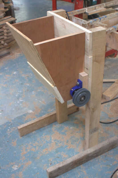 En nuestra antigua prensa utilizamos la tolva montada a la prensa, pero para acelerar este tiempo que nos dio un soporte separado por lo que algunas personas se podrían moler mientras que otros el puré.
