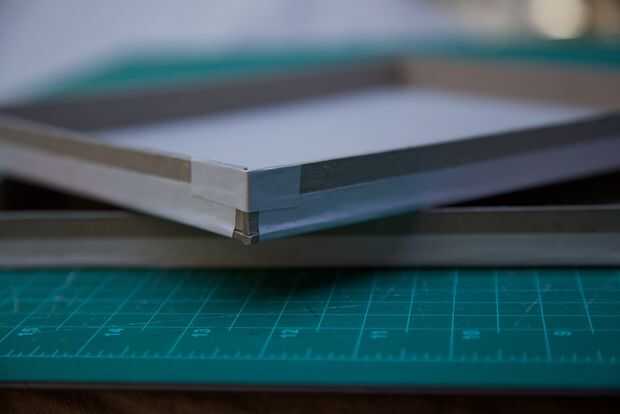 Ahora Arme los lados largos, con los lados cortos como una 'llave' para sostenerlos en su lugar en los extremos. Es un poco incómodo porque no tienes la esquina de la mesa para moldear alrededor.