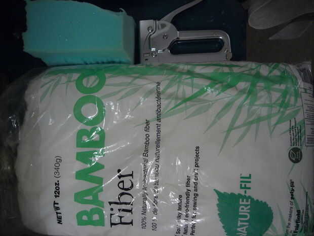 Fibra de bambú - esto también es opcional. Utilicé una capa de fibra de bambú encima de la espuma para que sea un poco más suave. La capa de fibras de bambú la suma da un asiento con más elasticidad, como la espuma tiende a ser un poco firme. Usé dos bolsas de las cosas. Usé el bambú en lugar de algodón principalmente para el beneficio ecológico y el hecho de que es anti-microbianos (como estoy seguro de que la maleta que encontré en la calle está llena de microbios!).