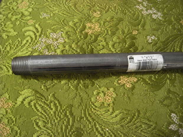 De plomería accesorios y pezón - para las piernas, opté por usar sólo 4 piezas de 1/2 pulgada por pie 3/4 acero niple y las asociadas de plomería. Son baratos y fácil, y creo que vea bien, aunque sería agradable encontrar unos pies de tornillo en la parte inferior del pezón, que deja marcas en mi alfombra. He intentado encontrar pies de garra y bola de miniatura, pero luego pensé que podría ser un poco exagerado, así que lo dejé simple.