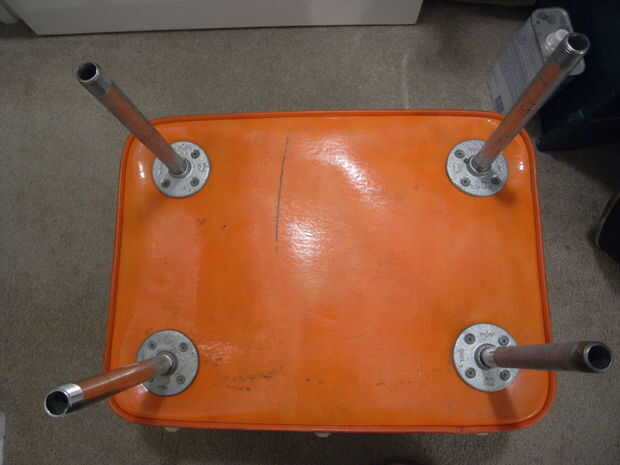 A continuación, voltee la maleta y colocar las guarniciones de la plomería que desee. Les taladro en su lugar. Girando los tornillos hasta que sienta la madera tirando hasta cumplir con el tornillo. Los accesorios deben sentirse firmemente apegados a la maleta, y la superficie de la maleta no debe doblarse demasiado.