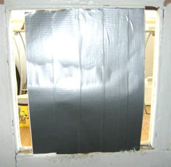Sostener su puerta la ventana para asegurarse de que es del tamaño adecuado. Debe extenderse más allá de la parte superior e inferior del agujero por un poco y no ser absolutamente tan amplia como el agujero. Mina era demasiado pequeño por todos lados, así que añadido algunos más cinta adhesiva.