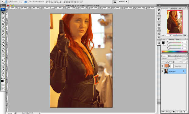 Dependiendo de la foto o el dibujo, puede añadir un poco de color sepia para que la foto más de un aspecto envejecido. Voy a utilizar una capa de relleno en este caso. Capas > llenar nueva capa > sólido Color. Cambiar el modo a luz suave y haga clic en OK. Elegir un color de relleno que se ve mejor a usted. Combinar esa capa sobre tu foto después de que usted está satisfecho con el efecto. A veces se puede jugar con niveles bastante que una capa de sepia es innecesaria.