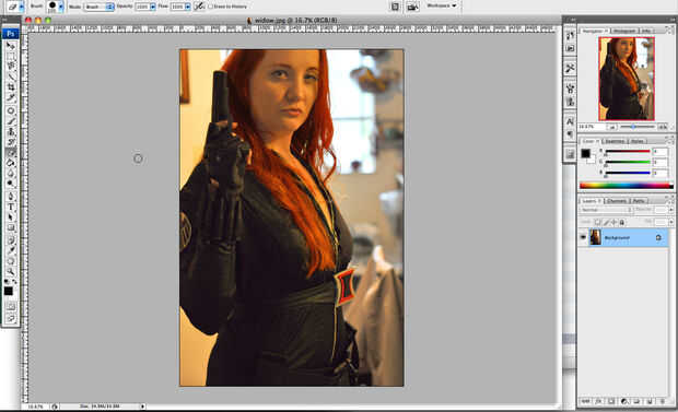 Después de que usted ha colocado en una foto, abrirlo en Photoshop y hacer cualquier corrección de imagen spot básico que desea. Esta foto es demasiado oscura, así que voy a abrir imagen > Ajustes > niveles para aligerarlo.