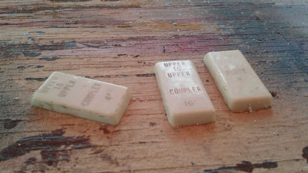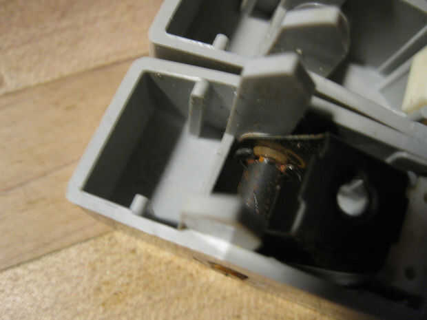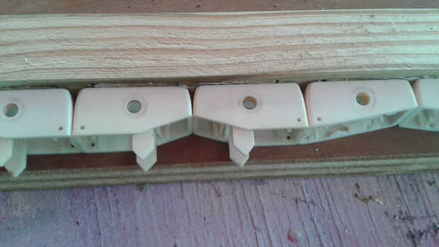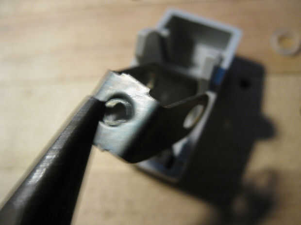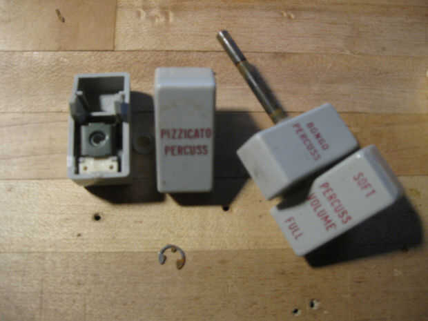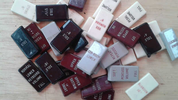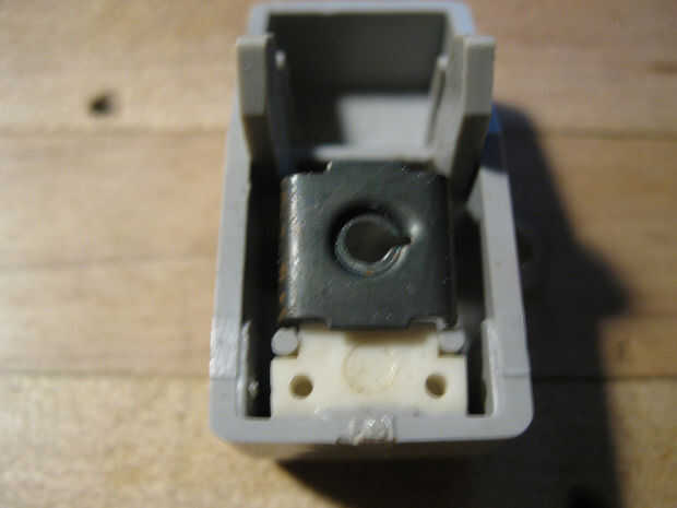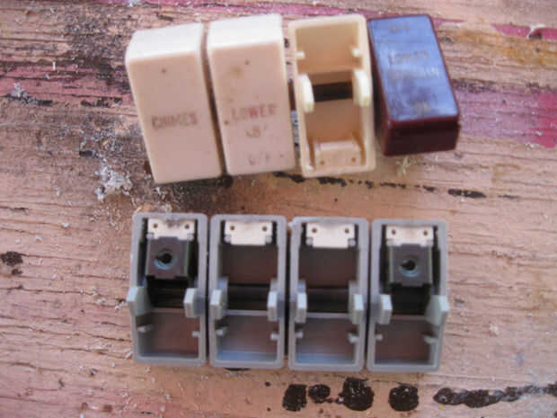 Primero los botones tuvieron que ser desmontado. Fueron montados sobre barras de acero en conjuntos de cuatro. Los botones se sujeta con pinzas. Separé los botones y había quitado todo el hardware y el plástico sobrante.