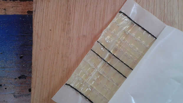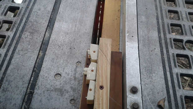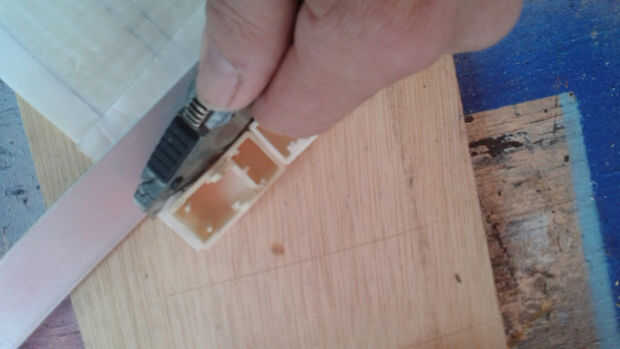 Los botones separados fueron un poco abultados, así que hice una plantilla para mantenerlos y utilizarlos a través de mi sierra de mesa. Usé dos cinta echada a un lado de la alfombra para mantener temporalmente los botones en la plantilla. Ajusté la cerca de la sierra para cortar los botones al grueso quería y cortarlas. Con cuidado quita los botones de corte de la plantilla y eliminado tanto de la cinta y adhesivo como sea posible. Lija la aspereza en los bordes de corte para evitar que los botones de rascarse mutuamente.