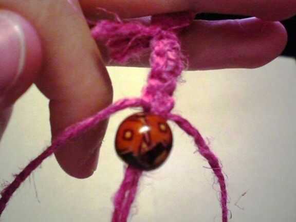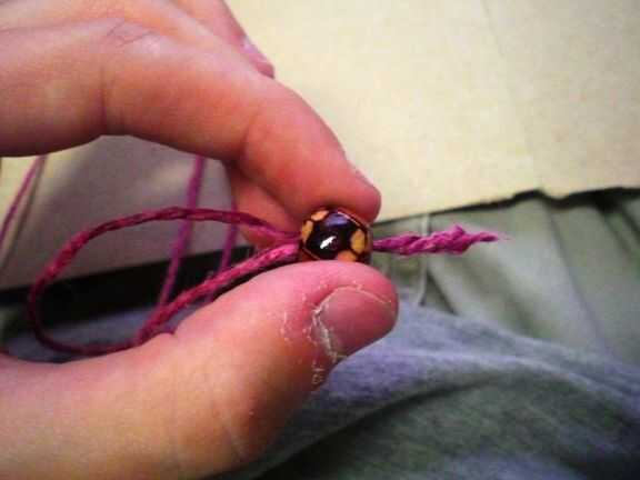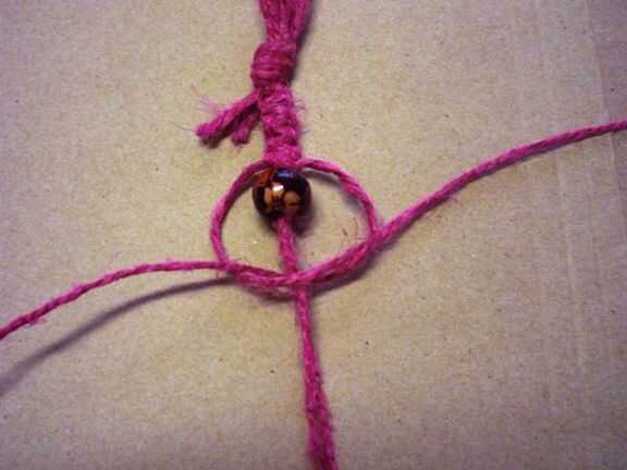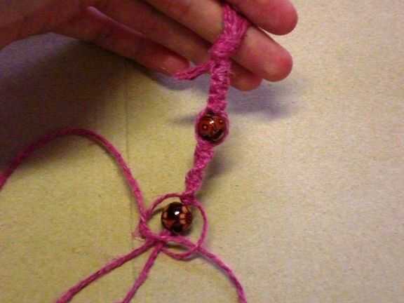 Una vez que tiene un cordón, atar nudos más! A continuación, añadir que otro grano si quieres, luego alguno más nudos. Entonces tal vez dos cuentas, u otro tipo de grano. Un sinfín de posibilidades. ¡ Haz tu pulsera al punto que es casi suficiente y pasemos al siguiente paso!