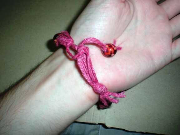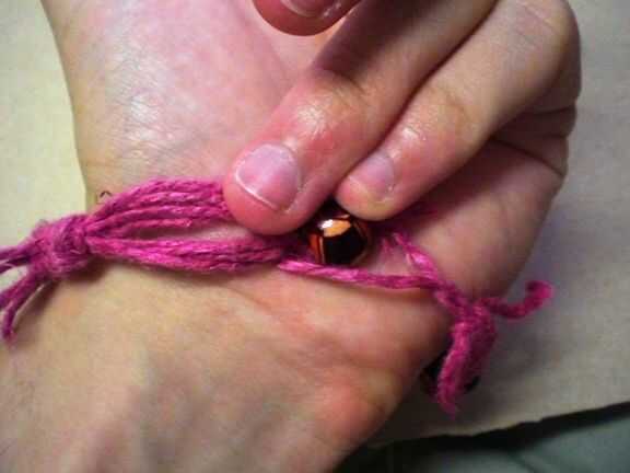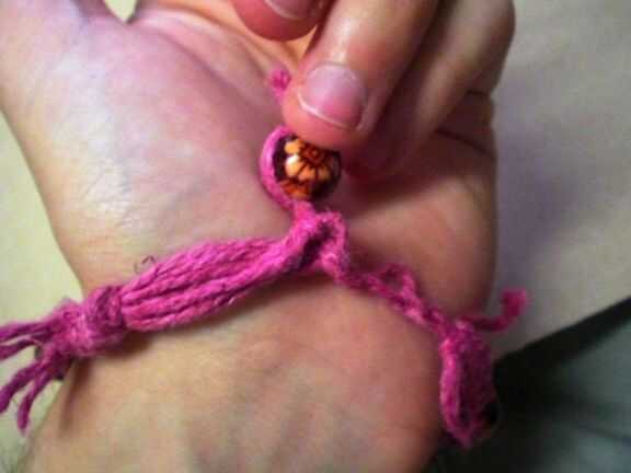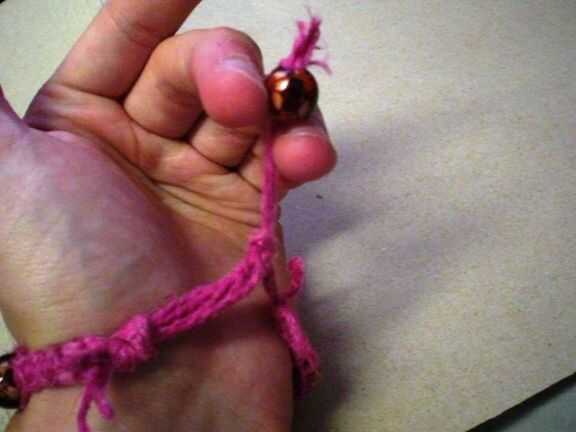 Tomar el grano y ponerlo a través del lazo y luego debajo y hacia arriba por en medio de él. Tire para ajustar.