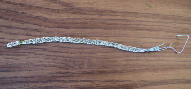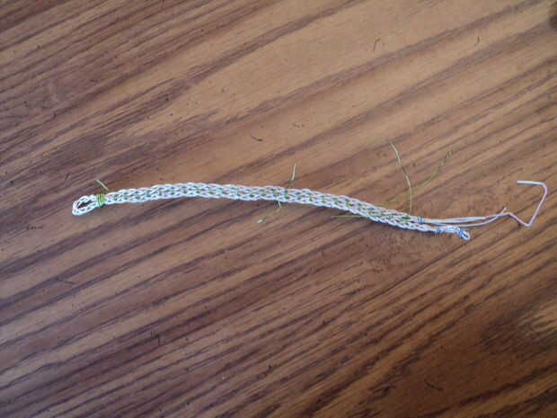 Doble a la mitad su trenza y alambre con el alambre de 20 calibre, sobre un 1/2 pulgada debajo de la tapa. Martillo o prensado para garantizar. Esta cuenta! Que se vea bien. Decidir de qué lado estará la parte exterior de tu pulsera. Ahora conecte las dos trenzas con el alambre de 26 calibre, como se describe en el paso anterior. Asegúrese de que el extremo de los cables en lo que será la parte exterior de su pulsera (a menos que te gusta el dolor). Cortar todos los cables como cerca de la trenza como sea posible. Ahora tu trenza tiene un extremo y un final inacabado.