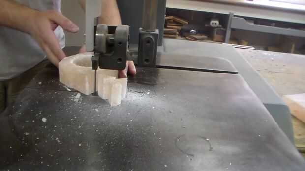 Lo dejé reposar unos 15 minutos antes de tomar a la Sierra de banda y corte de las esquinas. Corte las esquinas es normalmente hacer el proceso de torneado ir un poco más rápido, pero con un frágil material creo que '' es aún más importante para asegurar la supervivencia.