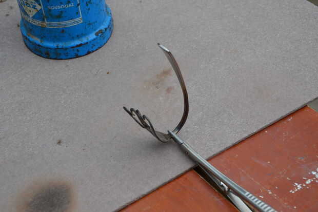 Después de doblar la parte superior, puede doblar la parte inferior en la forma correcta para hacer la pulsera. Otra vez calentando la horquilla. Enfriarlo y probar si puede caber alrededor de su brazo.