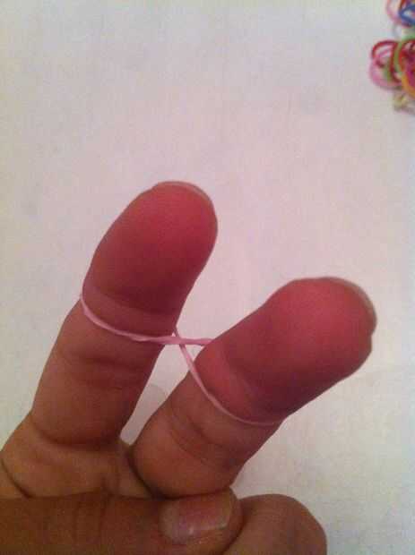 Comenzar con la colocación de una única banda en los dos dedos como esta. Lo siento por la imagen de mala calidad.