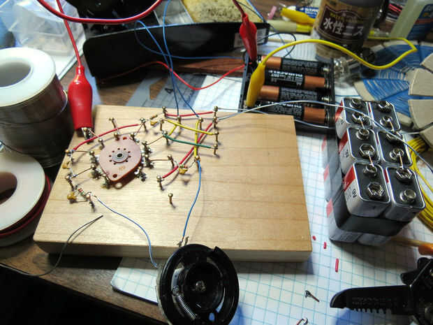 Lamentablemente no tengo muchas fotos de los cables de protoboard, pero es bastante fácil; sólo añade más pines según sea necesario y conectar los componentes, cuidando que el esquema de referencia a medida que avanza.