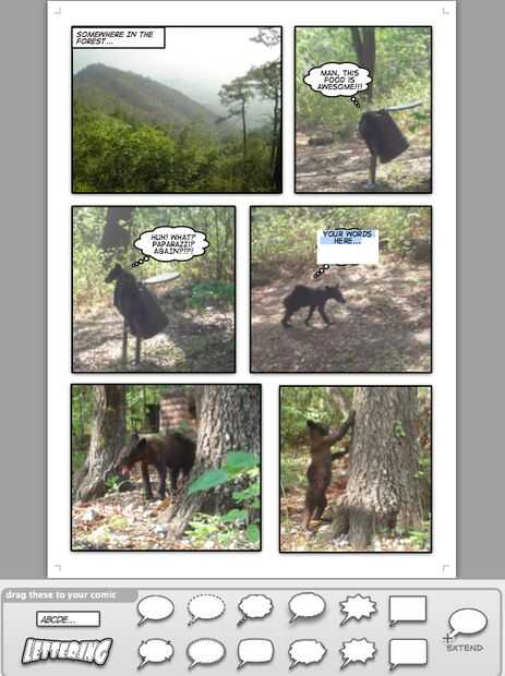 Observe cómo algunos globos del discurso se utilizan en diferentes situaciones. En la primera escena utilicé uno rectangular para indicar el ajuste. Entonces usé uno diferente para indicar pensamientos del oso. Los dos últimos se utilizan para diálogos normales. No se preocupe si usted no está seguro de Cuándo utilizar cada uno, sus hijos sabrán de seguro.